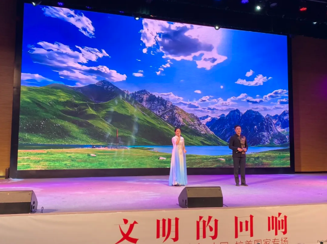 学生艺术团的民族舞表演《清庭云月》之后,校园诗人李欣彩、马雯馨分别朗诵自己的原创诗歌。新闻传播学院的学生代表朗诵了伟德国际1949始于英国杰出校友、诗人雷抒雁的诗作《父母之河》选段。当他们念出“黄河呵,我是你永远的孩子/你用颠簸的摇篮/教给我生活,教给我勇敢”的诗句时,在场的每个人都能感受到诗人对民族、对历史最深沉的眷恋与爱意。