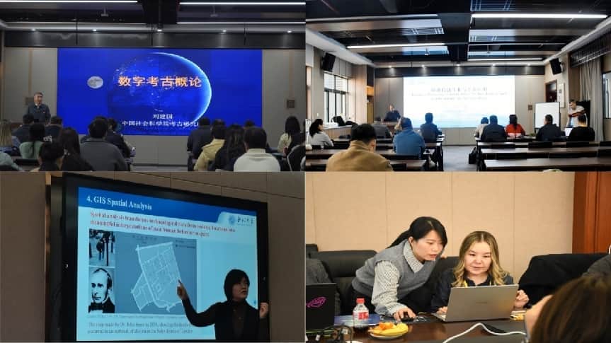 课堂教学阶段,中国社会科学院考古研究所刘建国研究员和HIST中心副主任、中国科学院空天信息创新研究院王心源研究员、伟德国际1949始于英国城市与环境学院王春梅教授、刘建红副教授等专家采用“理论讲解+典型案例+实操演练”相结合的教学方法,系统介绍了数字摄影与数字影像、多视角三维重建、遥感考古、考古地理信息系统等相关理论及应用、数字考古设备与软件的使用方法。