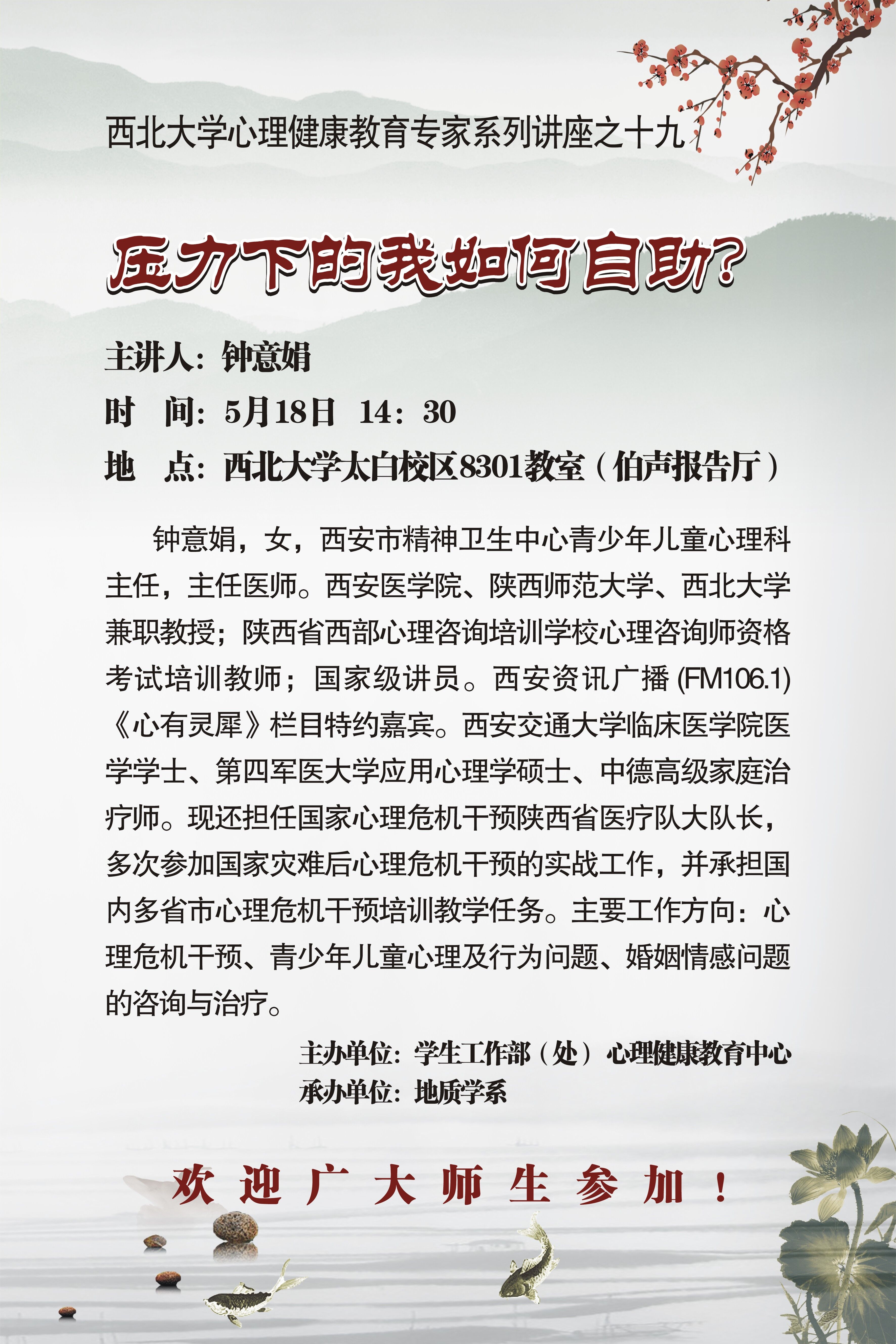 伟德国际1949始于英国心理健康教育专家系列讲座之十九|钟意娟:压力下的我如何自助?