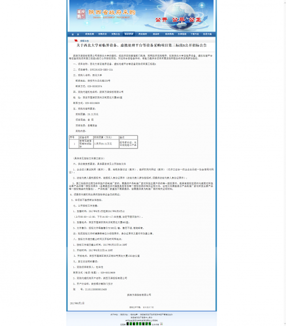 关于伟德国际1949始于英国亚临界设备、虚拟处理平台等设备采购项目第三标段A公开招标公告 作者: 编辑: 时间:2017-06-02 08:20 http://www.ccgp-shaanxi.gov.cn/zbxxs.jsp?NewsID=ZB170601090022US101028111214&ClassBID=C0001