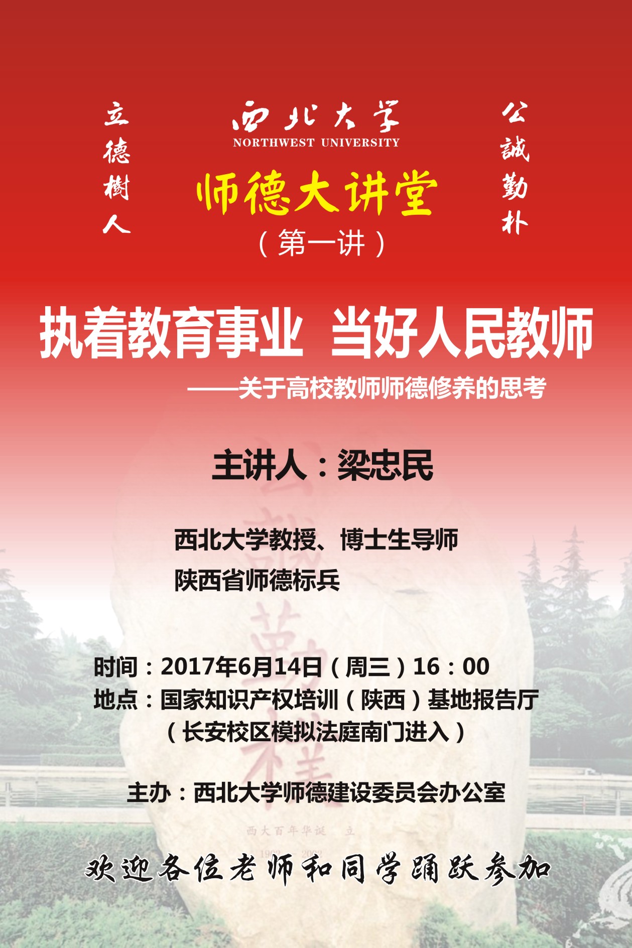 地点:长安校区模拟法庭西侧国家知识产权(陕西基地)报告厅