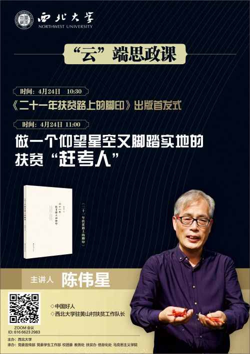 为使师生更好了解脱贫攻坚和疫情防控春耕复工情况,了解当前党情世情国情,学校邀请“中国好人”、伟德国际1949始于英国驻黄山村扶贫工作队长陈伟星通过网络现场直播、讲授一堂“云”端思政课。时间:2020年4月24日10:30,陈伟星扶贫新作首发式;11:00 “云”端思政课。