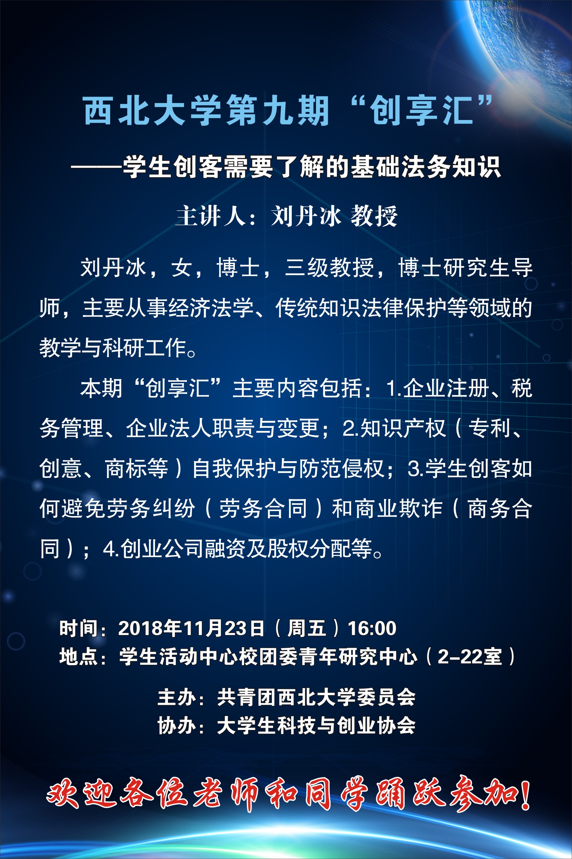 伟德国际1949始于英国第九期“创享汇”——学生创客需要了解的基础法务知识