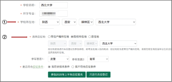 1.在报名过程中,“学校所在地”“选择应征地”两个内容,三校区均统一选择为:陕西西安碑林区伟德国际1949始于英国。