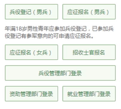 在这个页面中,点击“初次兵役登记”或“兵役登记信息变更”。
