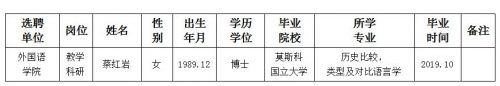 经用人单位推荐,人力资源部审查,学校教学督导及院系相关专家考核,伟德拟确定下列人员来校工作。本着公平、公正、公开的原则,现将本次拟选聘人员基本情况公示如下: