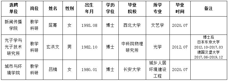 经用人单位推荐,人力资源部审查,学校教学督导及院系相关专家考核,伟德拟确定下列人员来校工作。本着公平、公正、公开的原则,现将本次拟选聘人员基本情况公示如下: