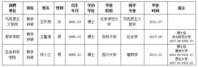 经用人单位推荐,人力资源部审查,学校教学督导及院系相关专家考核,伟德拟确定下列人员来校工作。本着公平、公正、公开的原则,现将本次拟选聘人员基本情况公示如下: