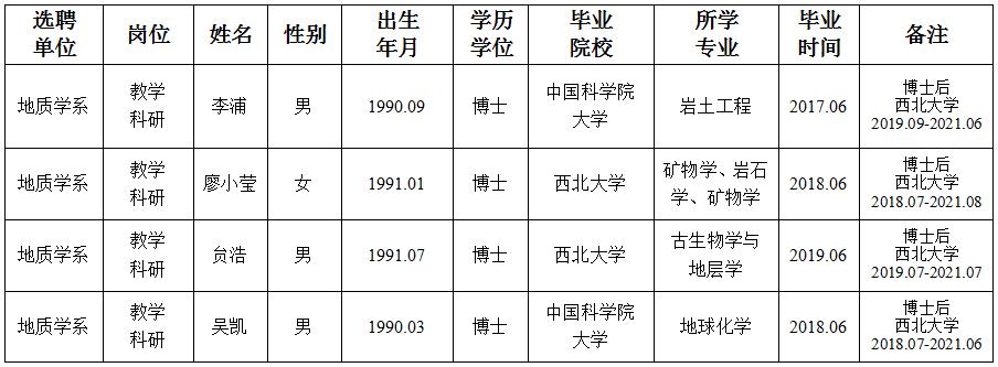 经用人单位及教学督导考核、学校研究,拟同意选聘下列人员来校工作,其聘任关系为A类人事代理。本着公平、公正、公开的原则,现将拟选聘人员基本情况公示如下: