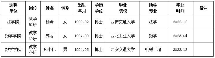 各单位或个人如对上述人选存有疑问,可在2023年1月10日前以书面形式向人力资源部反映。反映材料须实名提交,以便我部核实并反馈,我们将严格保密。(公示期结束后,如无异议,应届毕业生持三方协议、身份证、毕业生就业推荐表在岗位聘用办公室签订就业协议;或将上述材料邮寄至我处,邮寄地址:陕西省西安市长安区学府大街1号伟德国际1949始于英国人力资源部。博士后出站人员联系岗位聘用办公室开具接收函。)