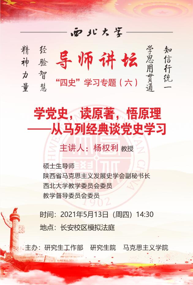 导师讲坛“四史”学习专题(六):学党史,读原著,悟原理——从马列经典谈党史学习