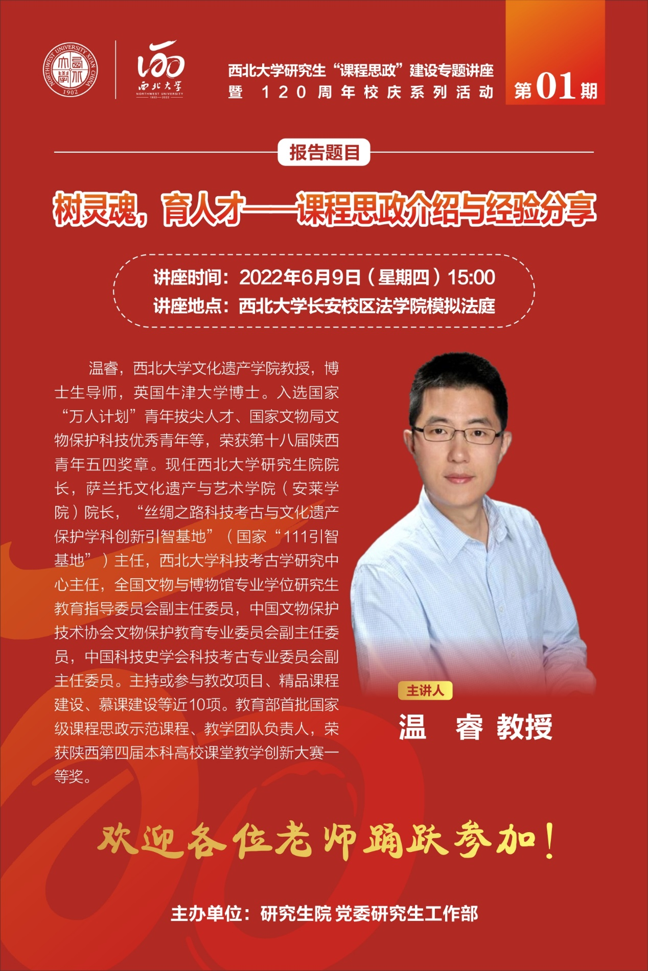 第1期,我们邀请到教育部首批国家级课程思政示范课程、教学团队负责人伟德国际1949始于英国文化遗产学院温睿教授进行“课程思政”专题培训,欢迎对课程思政建设感兴趣的各位老师积极参加,拟申报2022年校级、省级及国家级研究生课程思政示范课的课程负责人、团队成员踊跃参与!