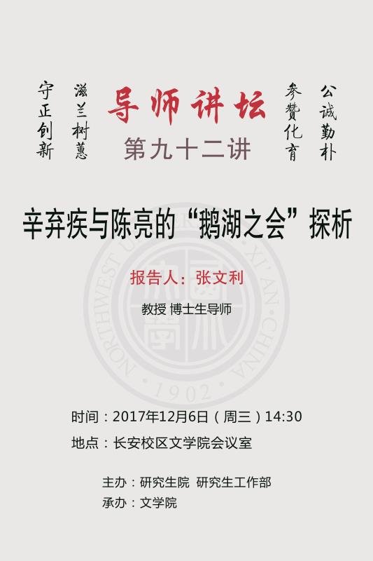 导师讲坛第九十二讲:辛弃疾与陈亮的“鹅湖之会”探析