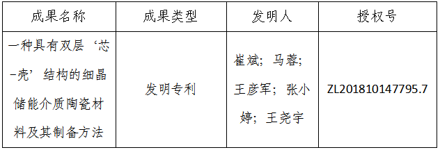 “一种具有双层‘芯-壳’结构的细晶储能介质陶瓷材料及其制备方法”。