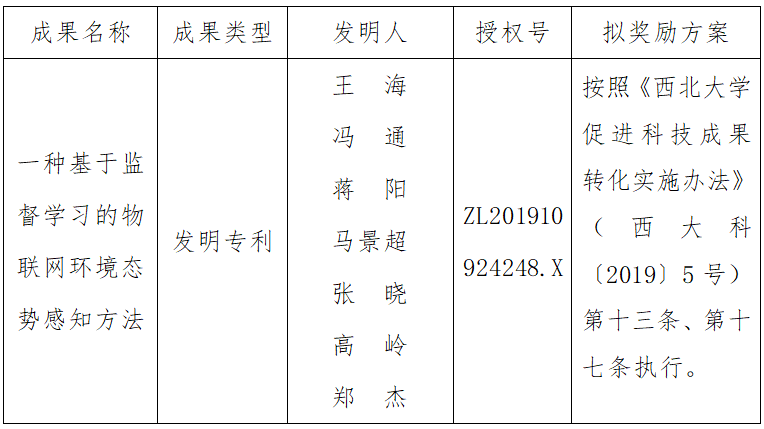 按照《伟德国际1949始于英国促进科技成果转化实施办法》(伟德科〔2019〕5号)相关规定,拟对伟德信息科学与技术学院王海副教授作为成果负责人的1项发明专利权实施转化,现将相关信息公示如下: