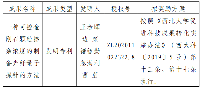 附件:拟转让成果信息及奖励方案