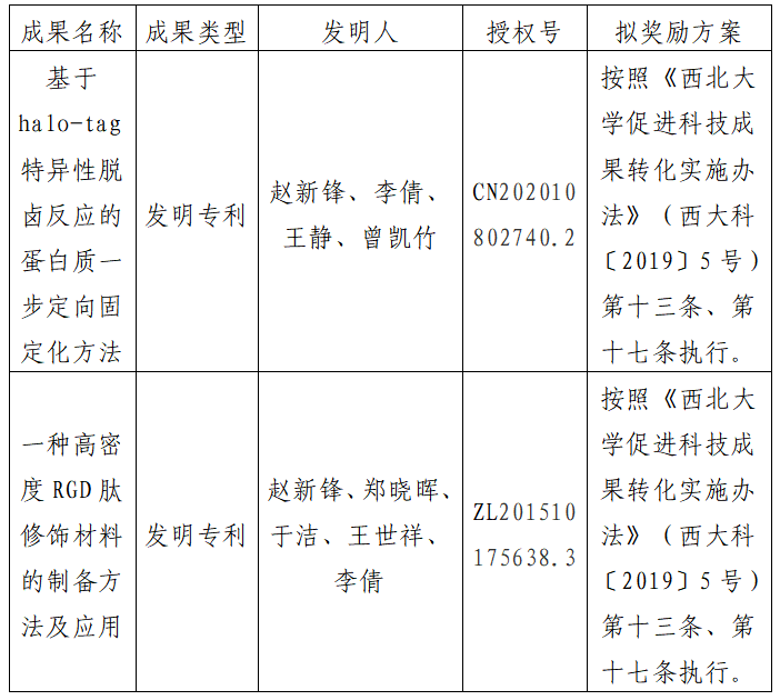 按照《伟德国际1949始于英国促进科技成果转化实施办法》(伟德科〔2019〕5号)相关规定,拟对伟德生命科学学院赵新锋教授作为成果负责人的2项发明专利权实施普通许可,现将相关信息公示如下: