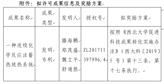 按照《伟德国际1949始于英国促进科技成果转化实施办法》(伟德科〔2019〕5号)相关规定,拟对伟德化工学院滕海鹏副教授作为成果负责人的1项发明专利权实施转化,现将相关信息公示如下: