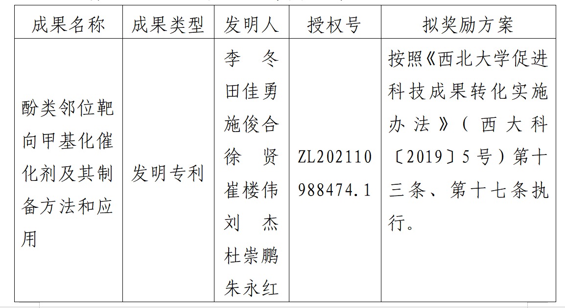 附件:拟许可成果信息及奖励方案