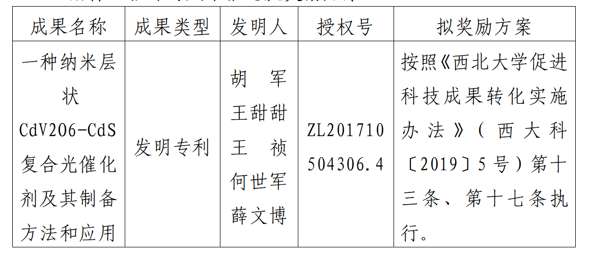 按照《伟德国际1949始于英国促进科技成果转化实施办法》(伟德科〔2019〕5号)相关规定,拟对伟德化工学院胡军教授作为成果负责人的1项发明专利权实施转化,现将相关信息公示如下:
