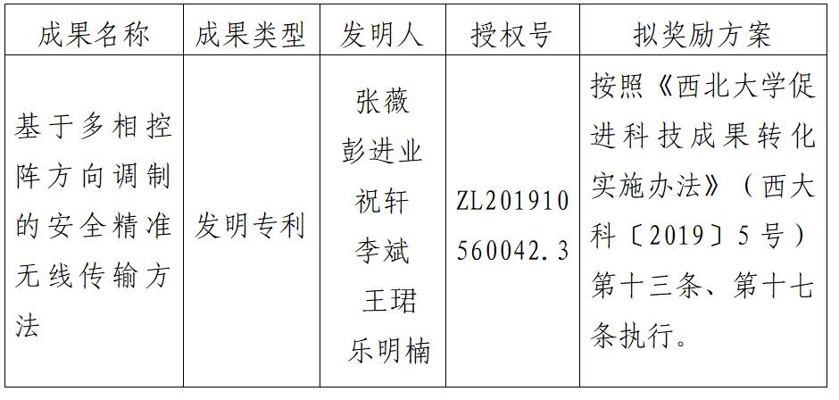 附件:拟许可成果信息及奖励方案