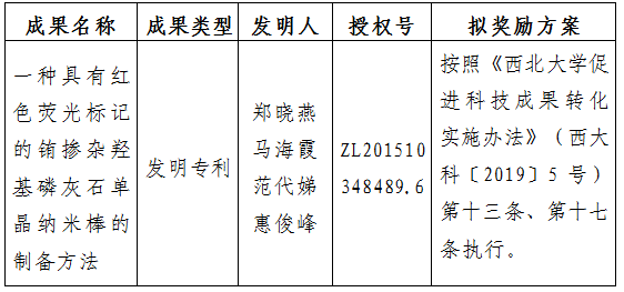 附件:拟转让成果信息及奖励方案