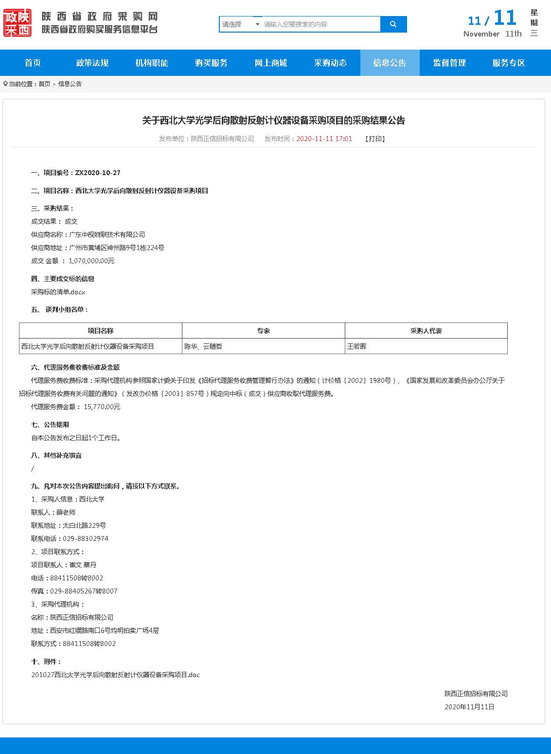 关于伟德国际1949始于英国光学后向散射反射计仪器设备采购项目的采购结果公告