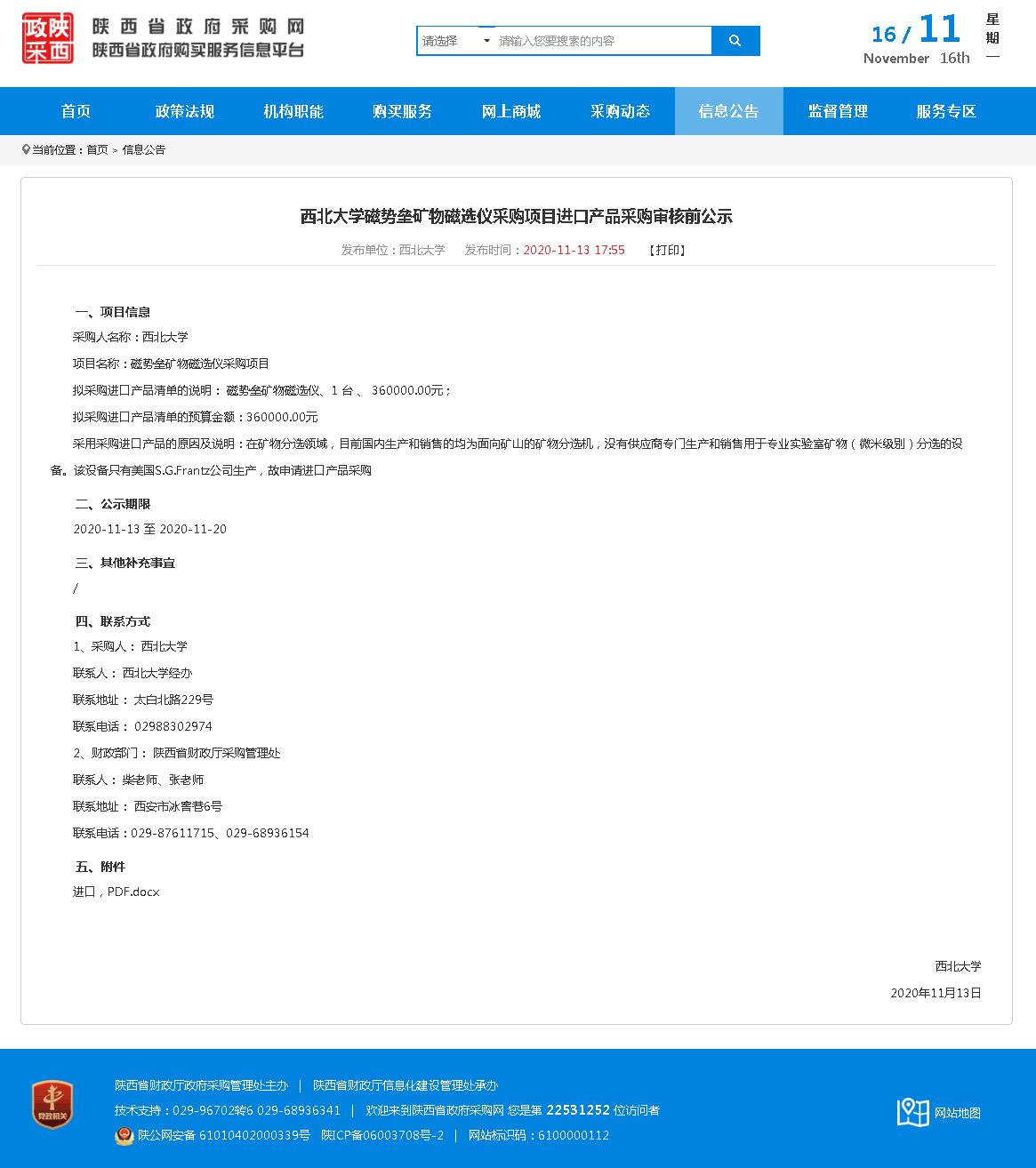 伟德国际1949始于英国磁势垒矿物磁选仪采购项目进口产品采购审核前公示