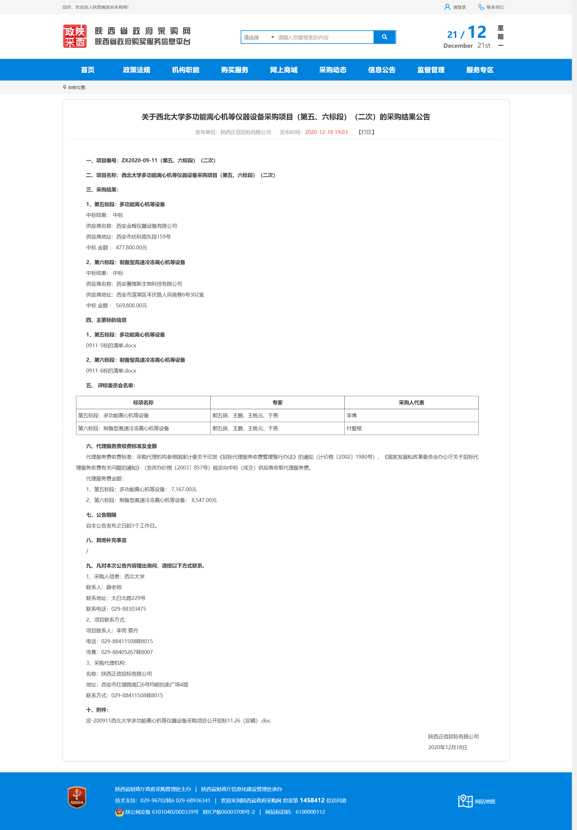 关于伟德国际1949始于英国多功能离心机等仪器设备采购项目(第五、六标段)(二次)的采购结果公告 作者: 编辑:薛利娟 时间:2020-12-21 原 原公告地址:http://www.ccgp-shaanxi.gov.cn/notice/noticeDetail.do?noticeguid=8a85be34765f9eac01767583a6a72bec