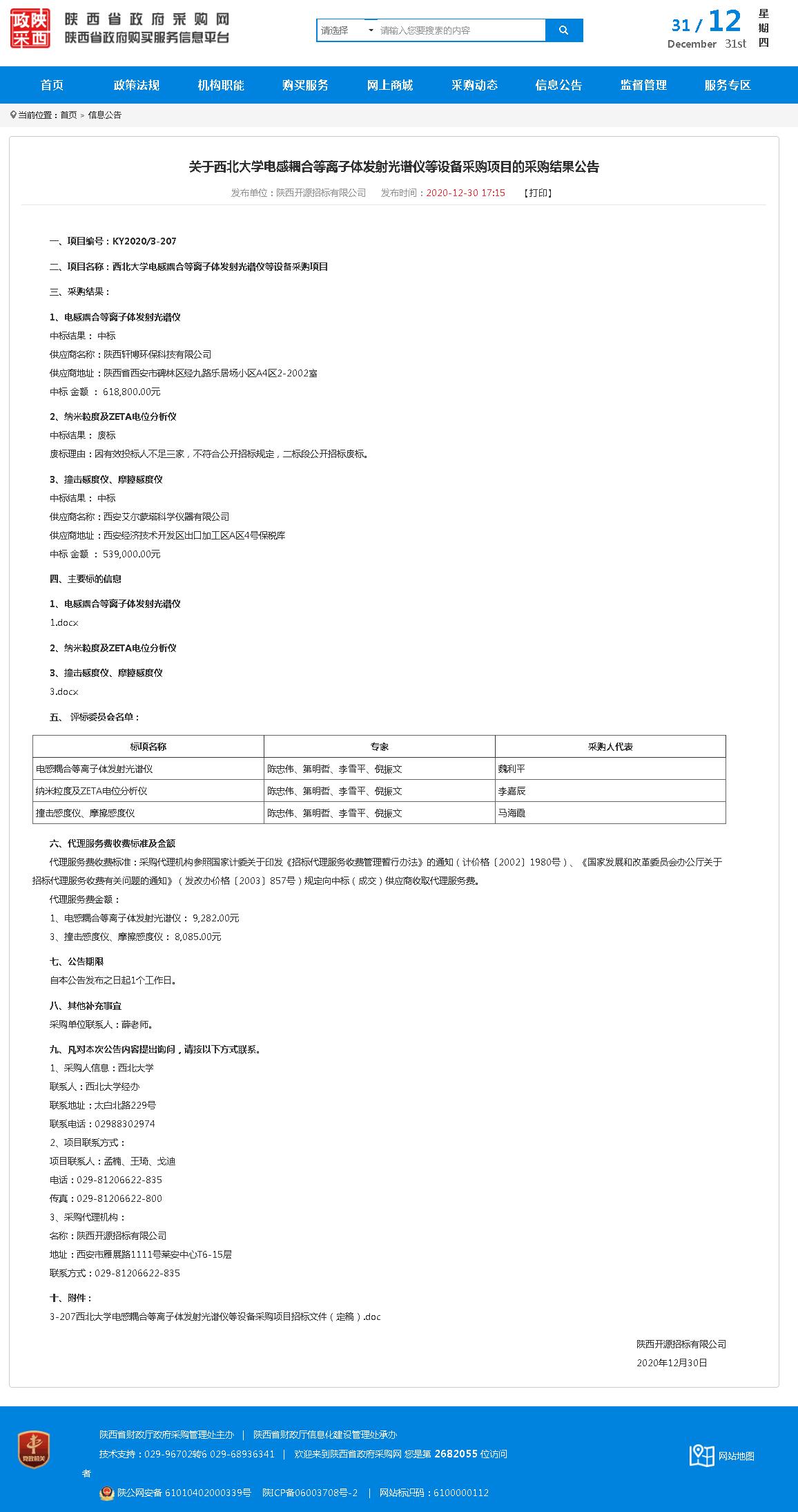 伟德国际1949始于英国电感耦合等离子体发射光谱仪等设备采购项目的采购结果公告