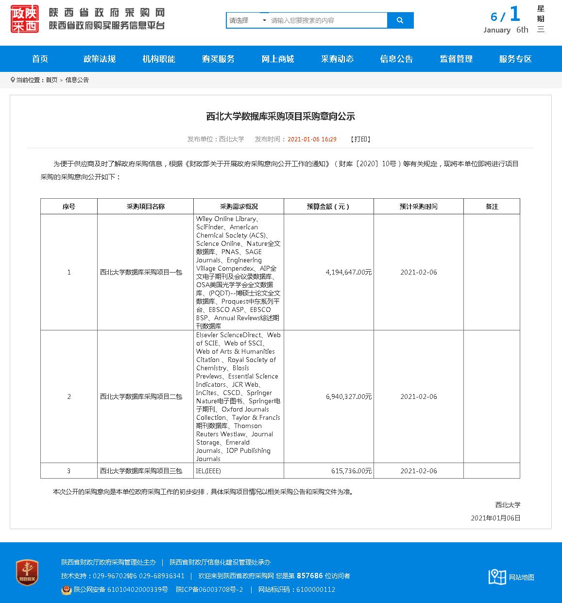 伟德国际1949始于英国数据库采购项目采购意向公示