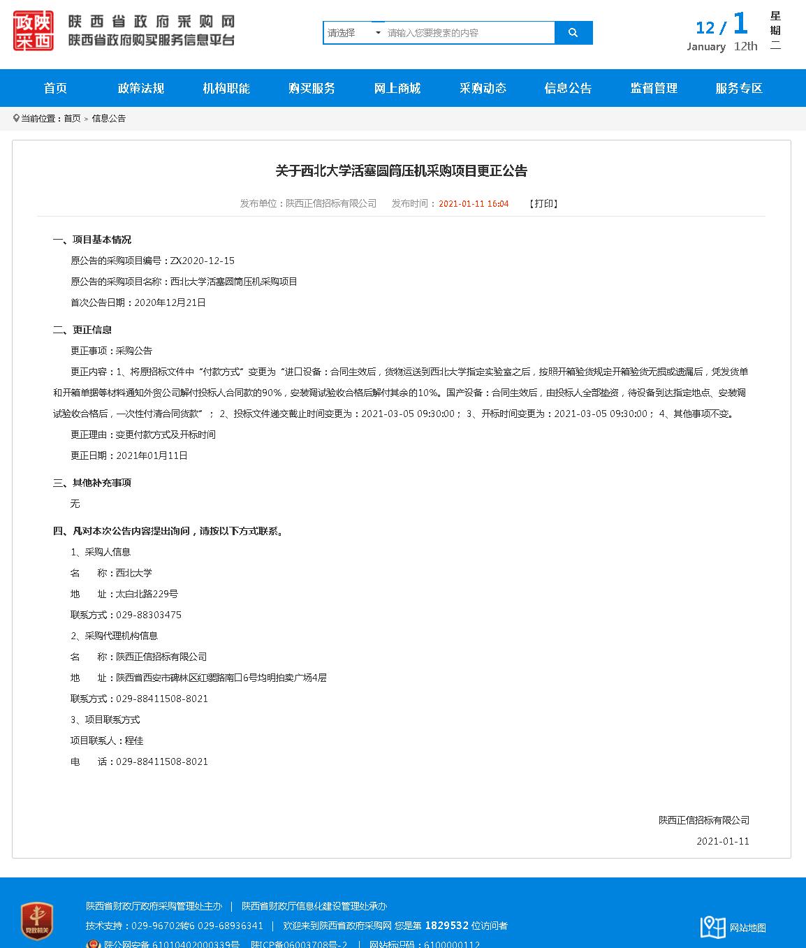 伟德国际1949始于英国活塞圆筒压机采购项目更正公告