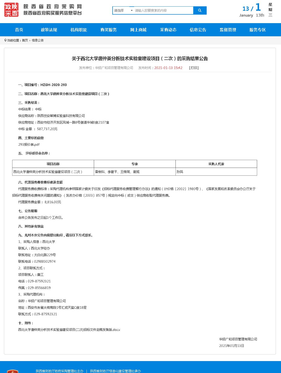 关于伟德国际1949始于英国唐仲英分析技术实验室建设项目(二次)的采购结果公告