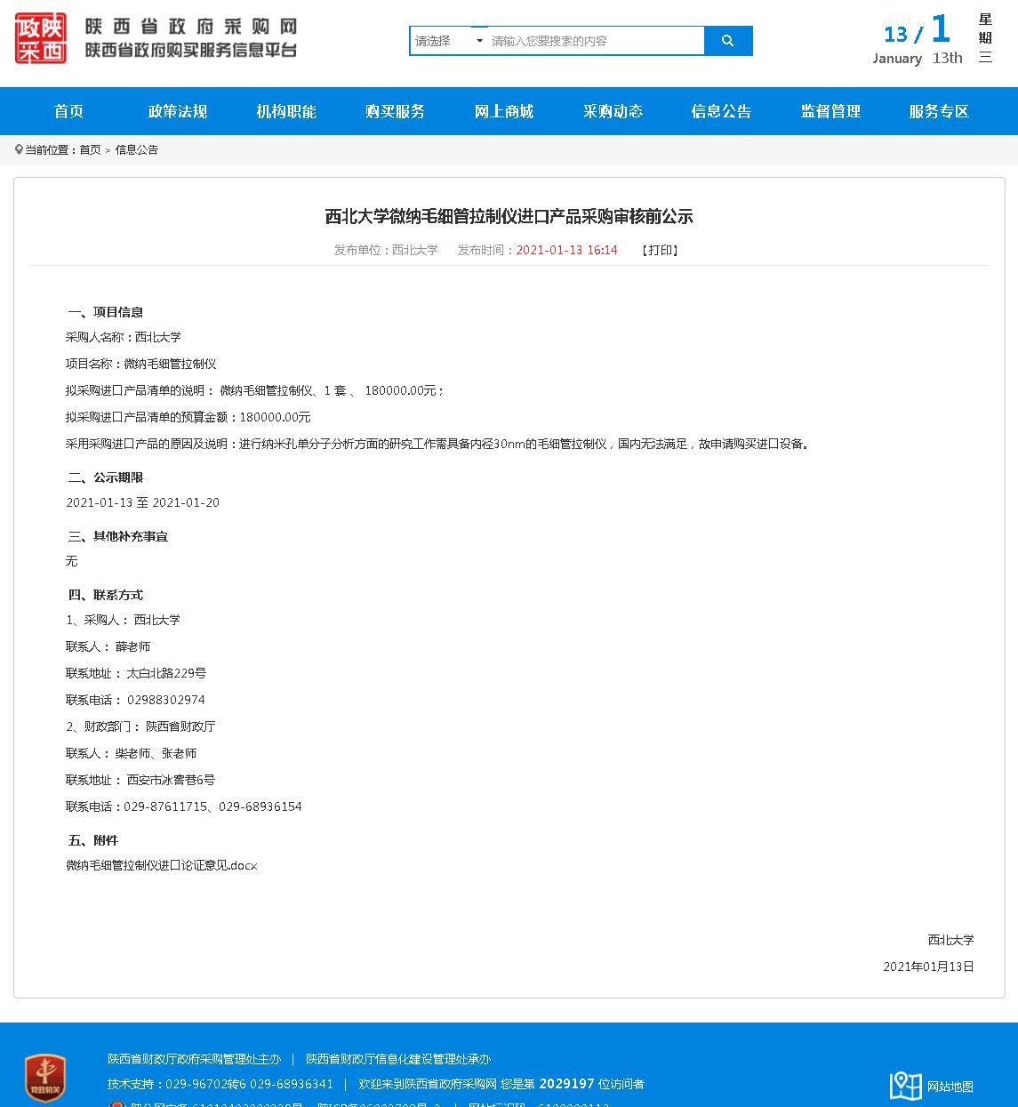 伟德国际1949始于英国微纳毛细管拉制仪进口产品采购审核前公示