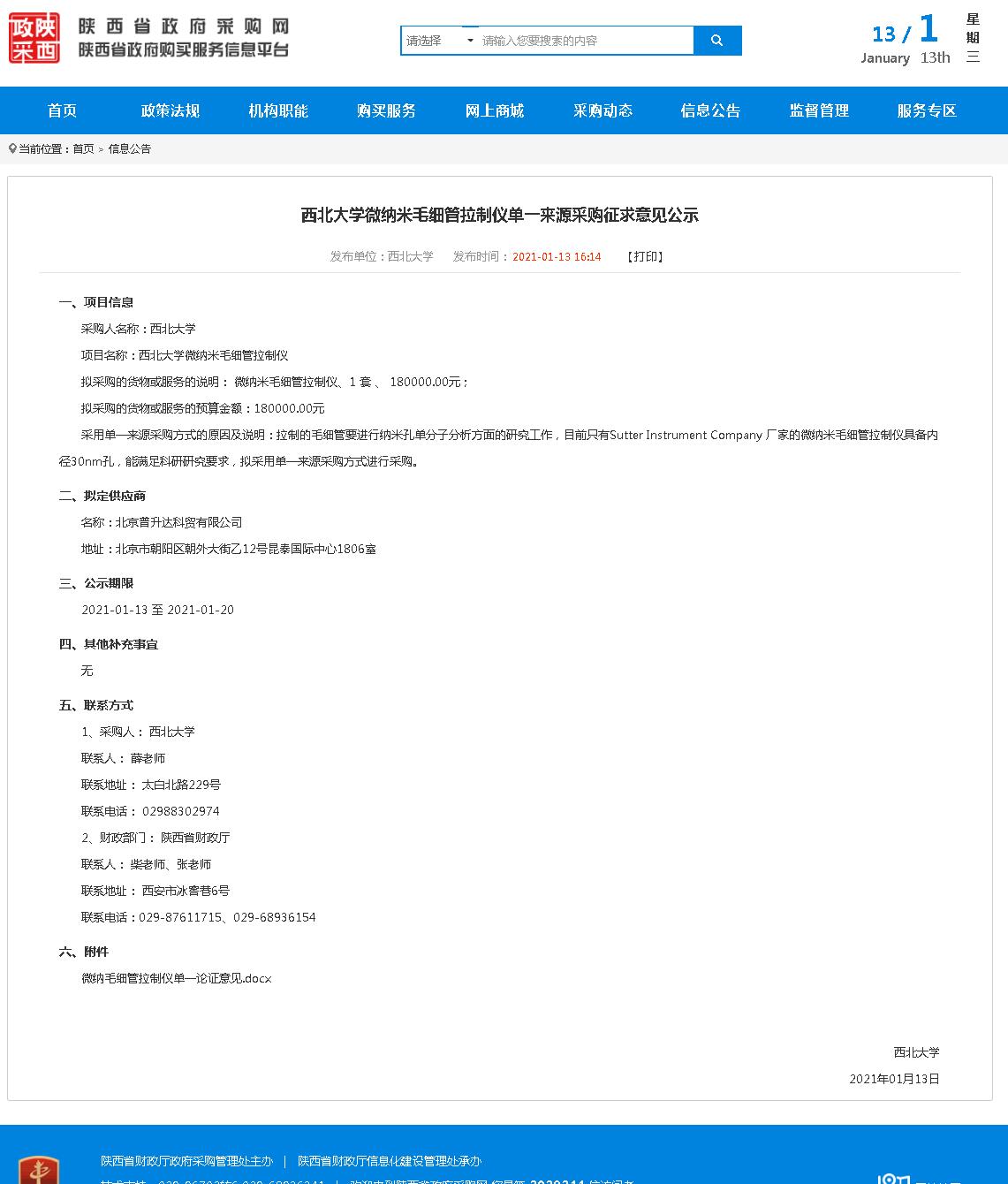 伟德国际1949始于英国微纳米毛细管拉制仪单一来源采购征求意见公示