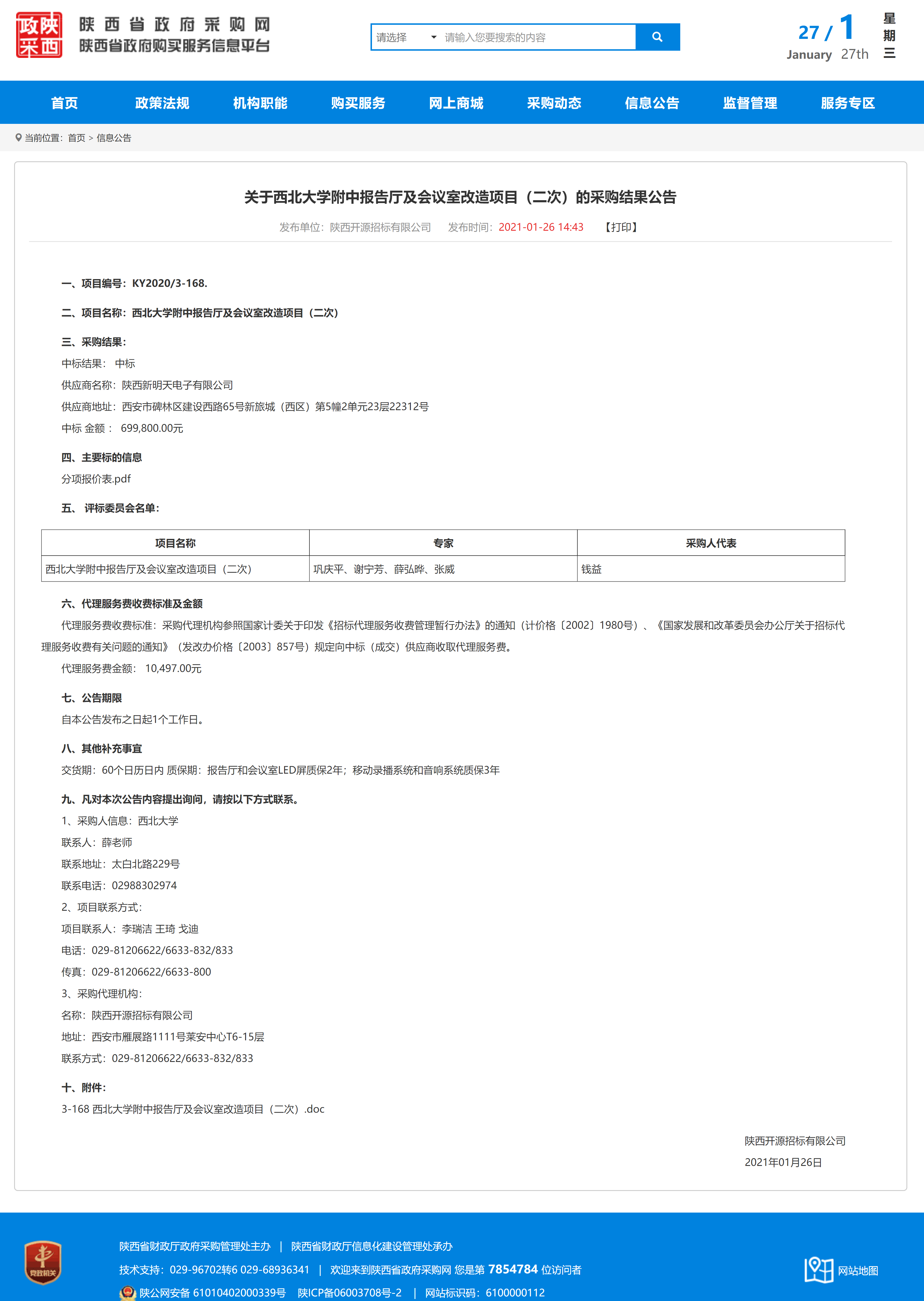 伟德国际1949始于英国附中报告厅及会议室改造项目(二次)的采购结果公告