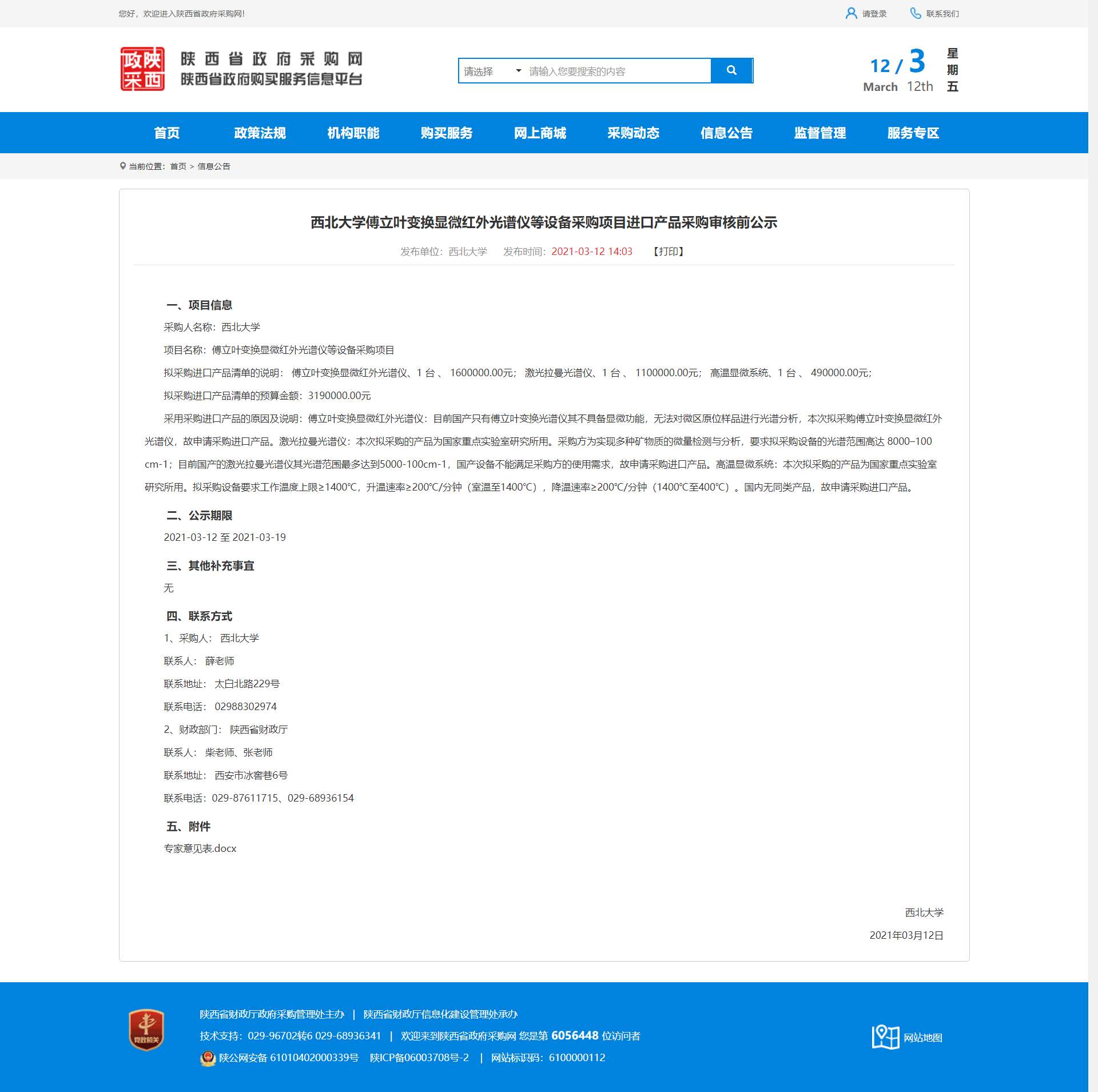 伟德国际1949始于英国傅立叶变换显微红外光谱仪等设备采购项目进口产品采购审核前公示 作者: 编辑:薛利娟 时间:2021-03-12 原公告地址:http://www.ccgp-shaanxi.gov.cn/notice/noticeDetail.do?noticeguid=8a85be3377b2eca3017823fb30ad533f