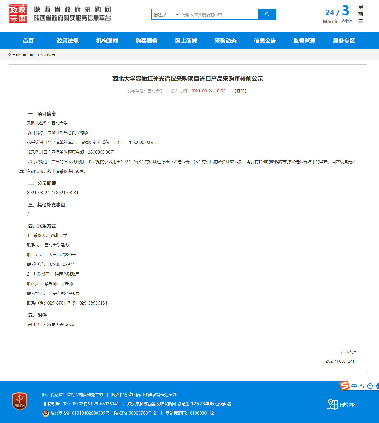 伟德国际1949始于英国显微红外光谱仪采购项目进口产品采购审核前公示