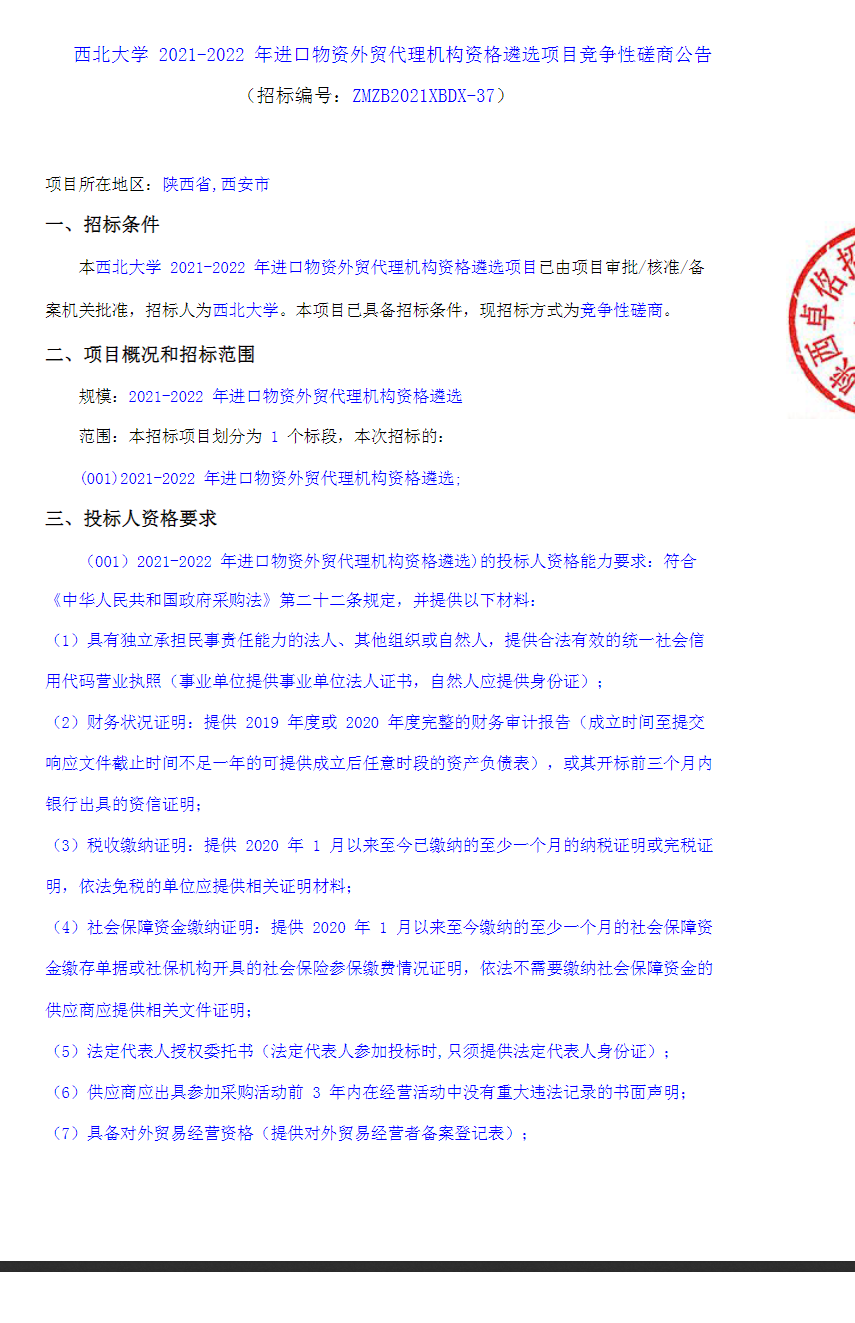 伟德国际1949始于英国2021-2022年进口物资外贸代理机构资格遴选项目竞争性磋商公告