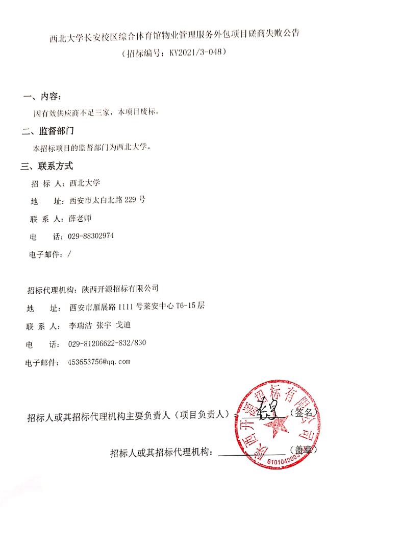伟德国际1949始于英国长安校区综合体育馆物业管理服务外包项目磋商失败公告