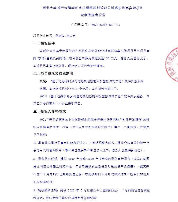 伟德国际1949始于英国基于运筹学的乡村道路规划效能分析虚拟仿真实验项目竞争性磋商公告