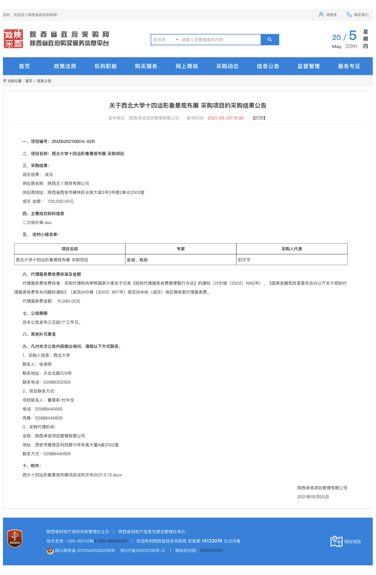 关于伟德国际1949始于英国十四运形象景观布展采购项目的采购结果公告