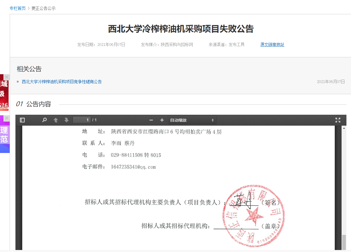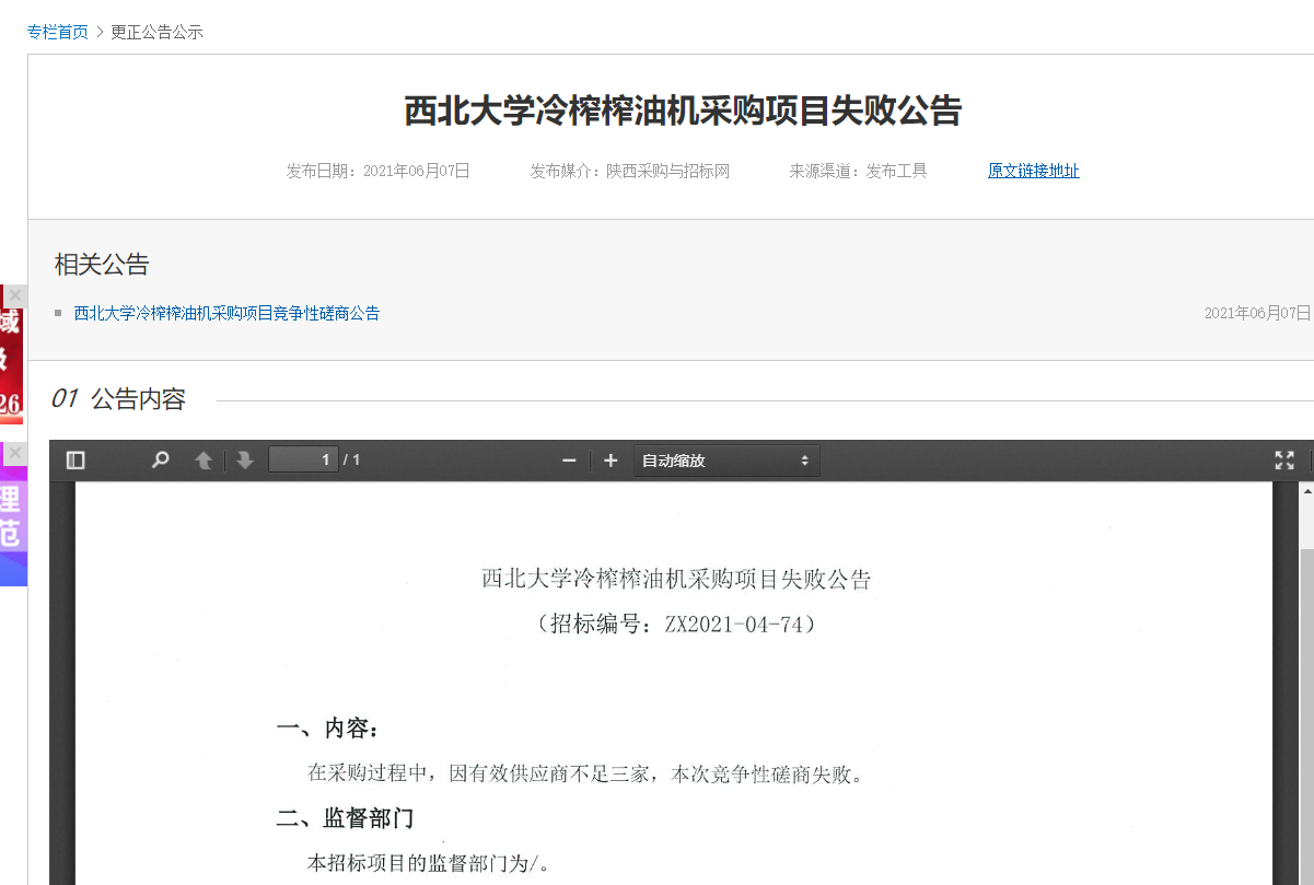 伟德国际1949始于英国冷榨榨油机采购项目失败公告 作者: 编辑:薛利娟 时间:2021-06-07 原公告地址:http://bulletin.sntba.com/changeBulletin/2021-06-07/305152.html