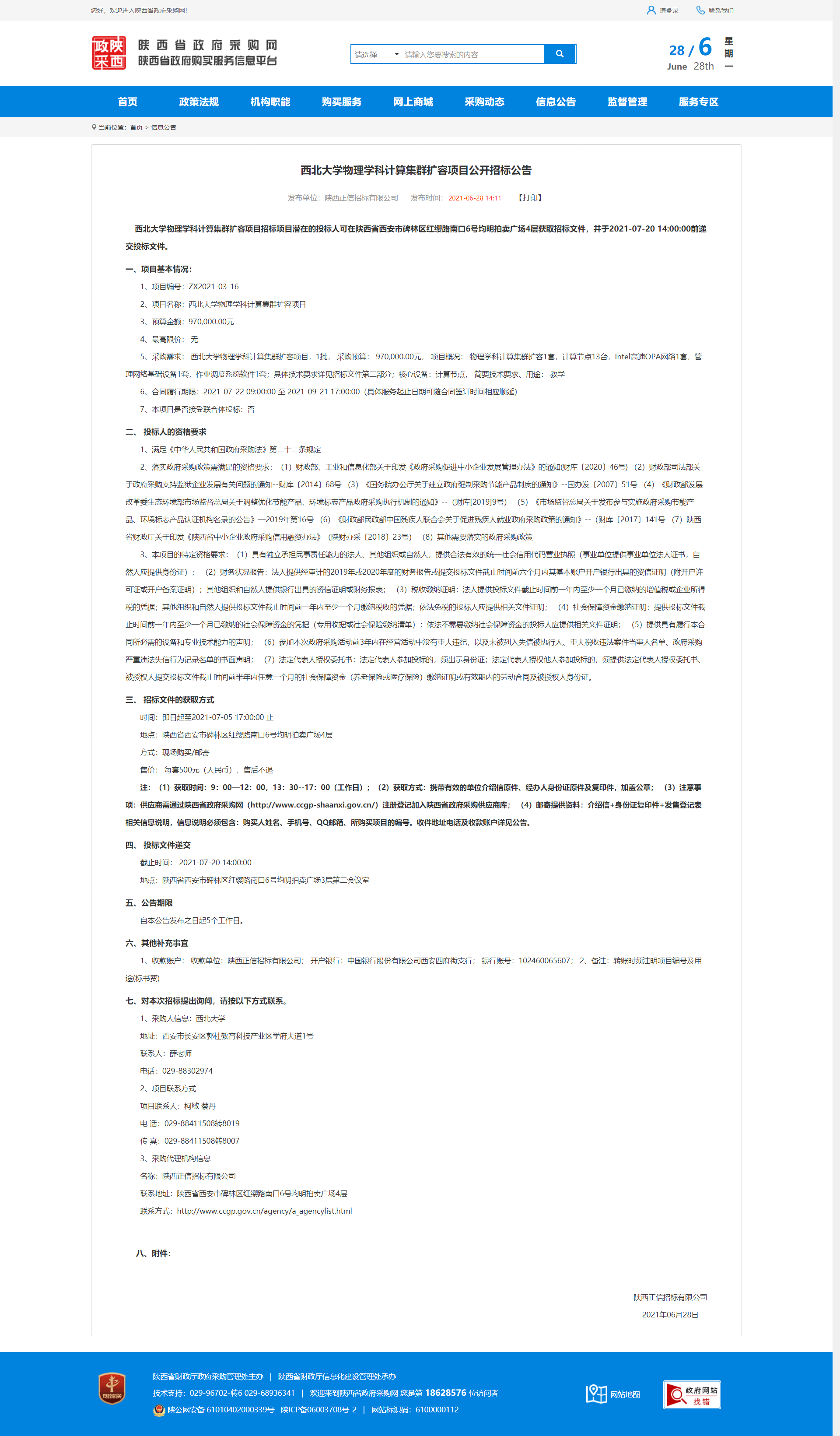 伟德国际1949始于英国物理学科计算集群扩容项目公开招标公告 作者: 编辑:采购与招标办公室 时间:2021-06-28 原公告地址:http://www.ccgp-shaanxi.gov.cn/notice/noticeDetail.do?noticeguid=8a85be33791baa0f017a50f2f9203176