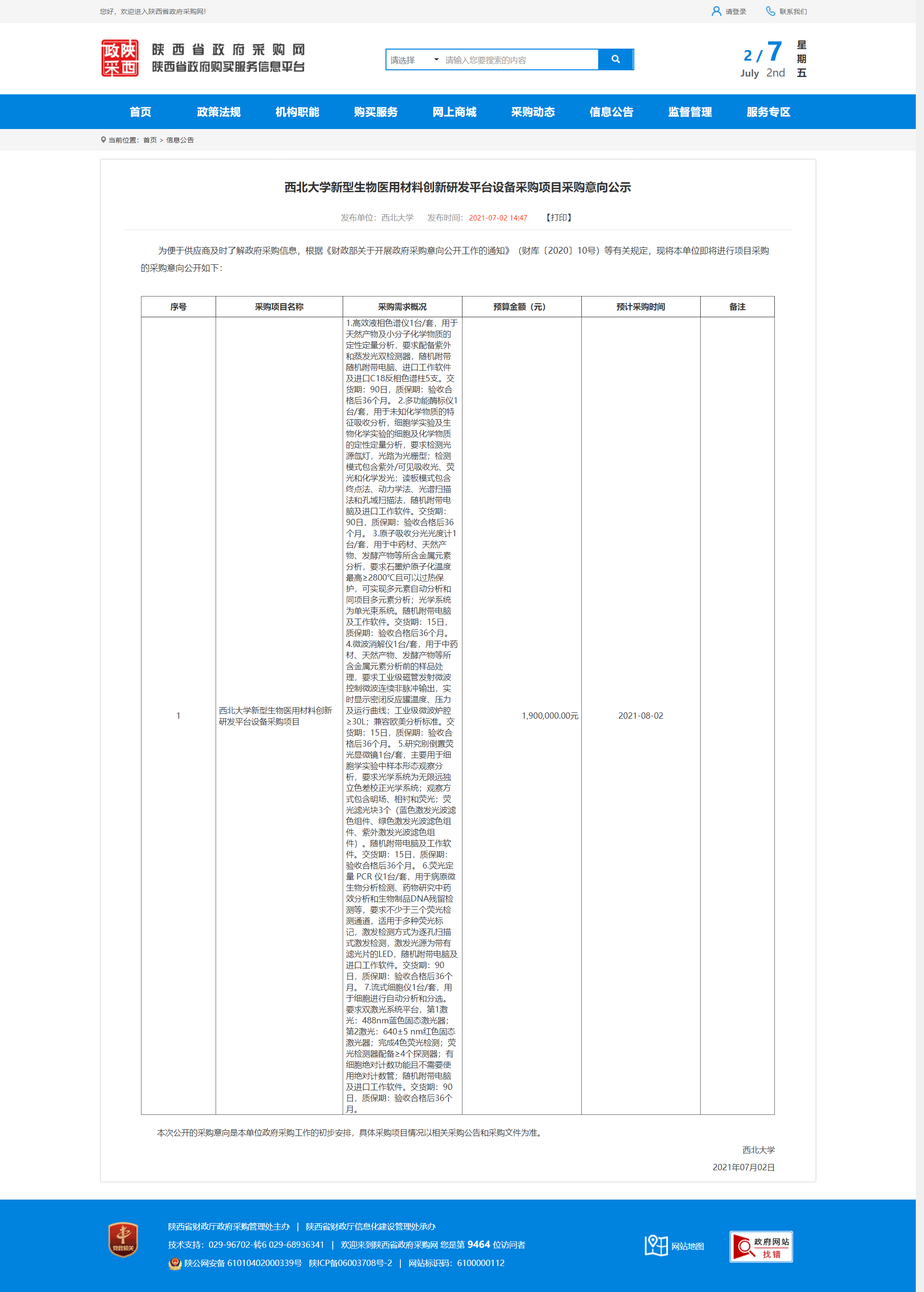 伟德国际1949始于英国新型生物医用材料创新研发平台设备采购项目采购意向公示 作者: 编辑:采购与招标办公室 时间:2021-07-02 原公告地址:http://www.ccgp-shaanxi.gov.cn/notice/noticeDetail.do?noticeguid=8a85be317a51dcbc017a65f4bbc71f16