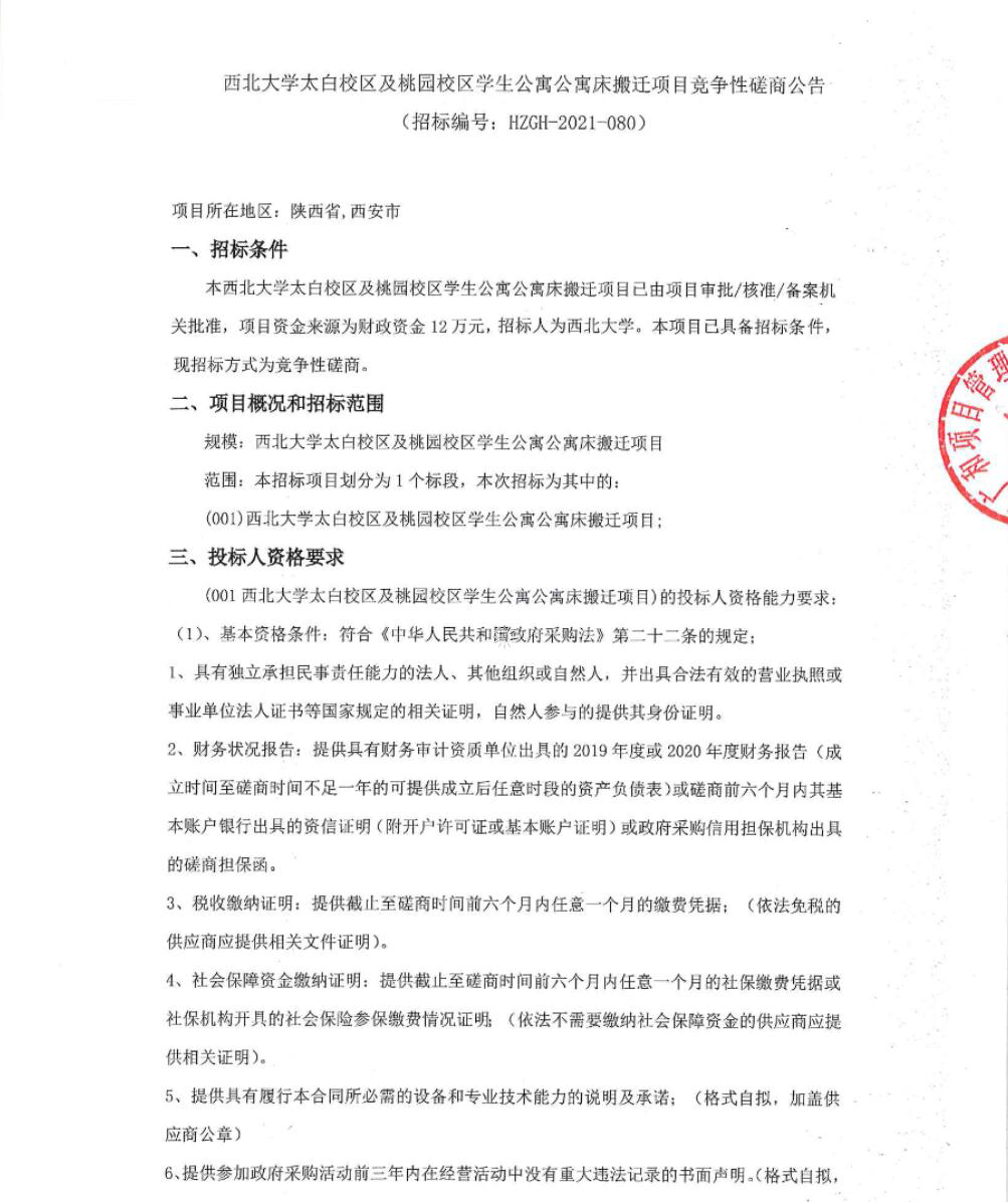 伟德国际1949始于英国太白校区及桃园校区学生公寓公寓床搬迁项目