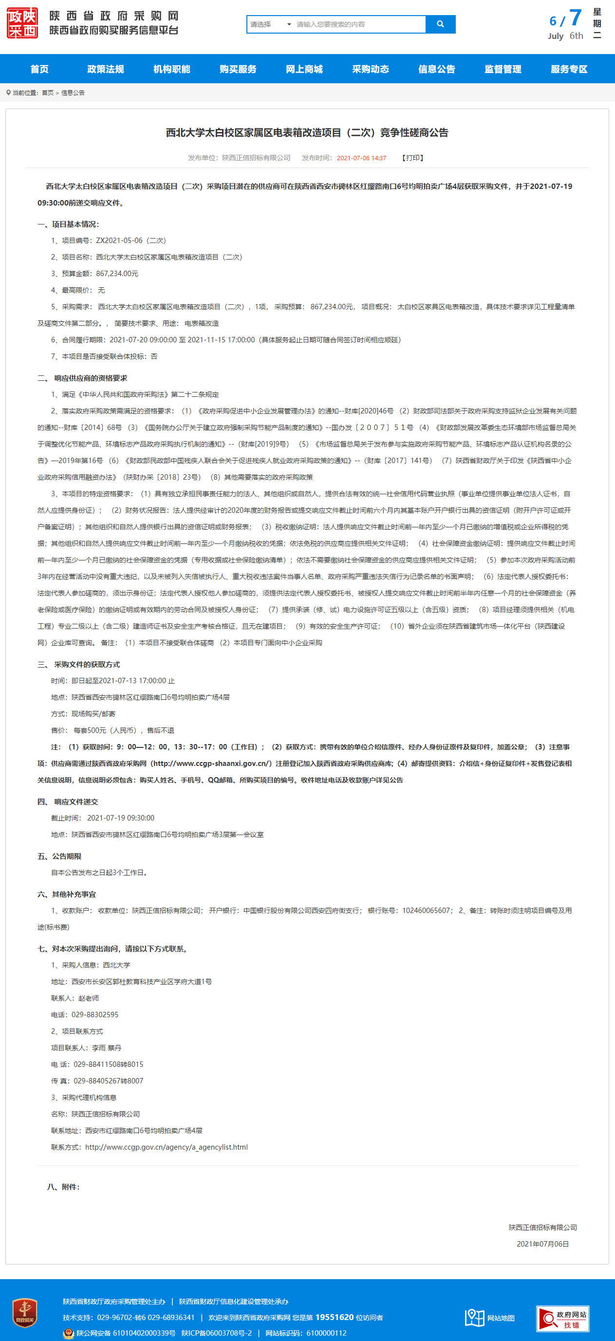 伟德国际1949始于英国太白校区家属区电表箱改造项目(二次)竞争性磋商公告