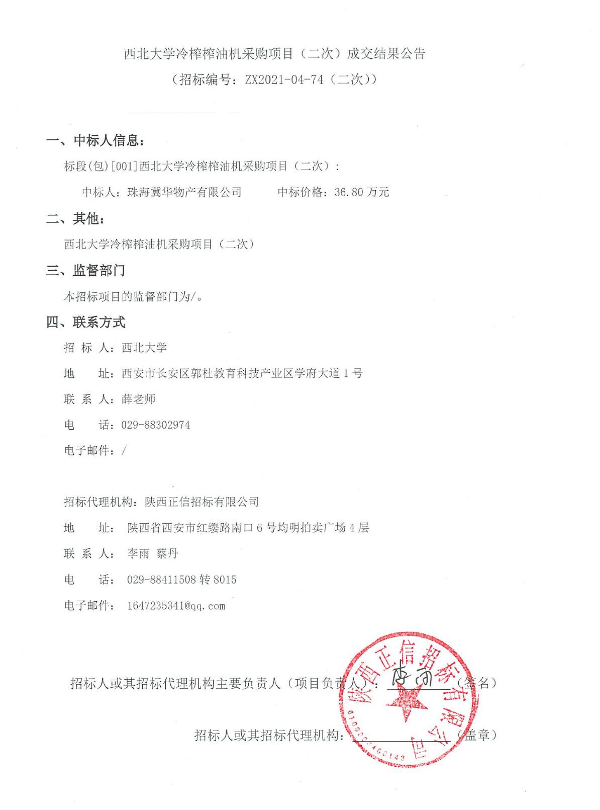伟德国际1949始于英国冷榨榨油机采购项目(二次)成交结果公告