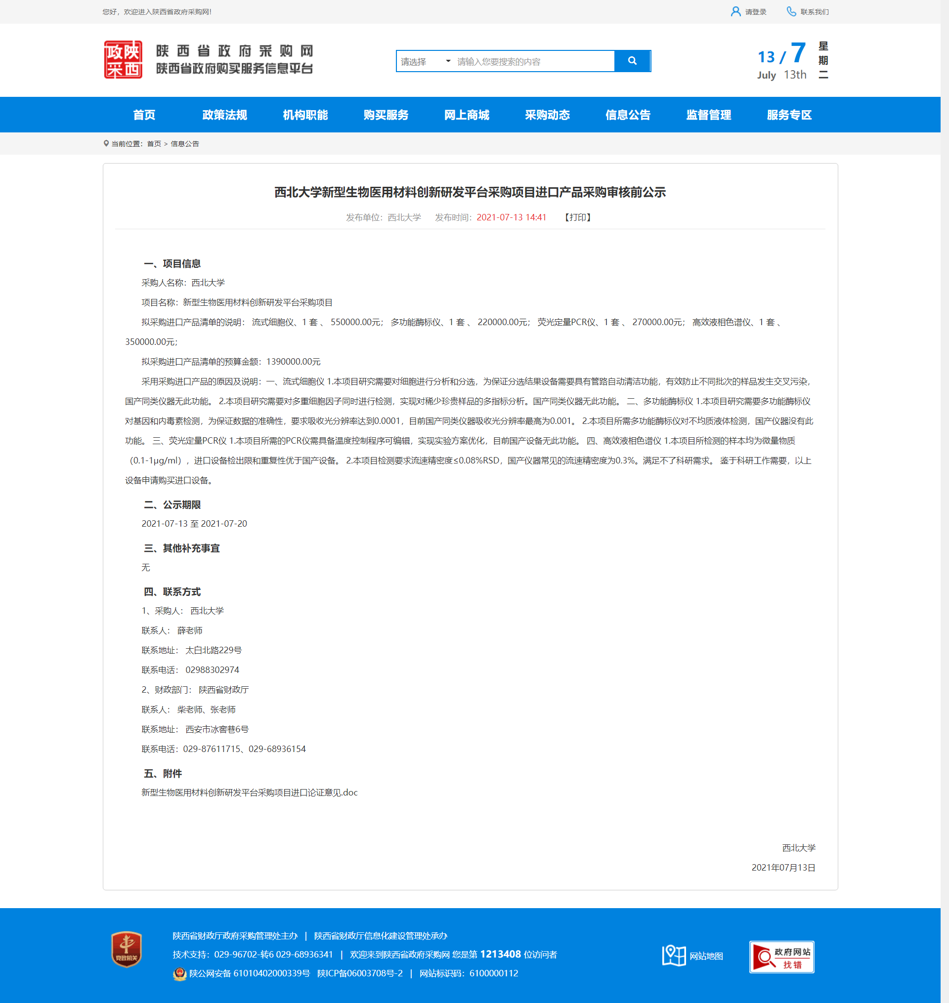 伟德国际1949始于英国新型生物医用材料创新研发平台采购项目进口产品采购审核前公示 作者: 编辑:采购与招标办公室 时间:2021-07-13 原公示地址:http://www.ccgp-shaanxi.gov.cn/notice/noticeDetail.do?noticeguid=8a85be317a79693c017a9e7fb1b57286