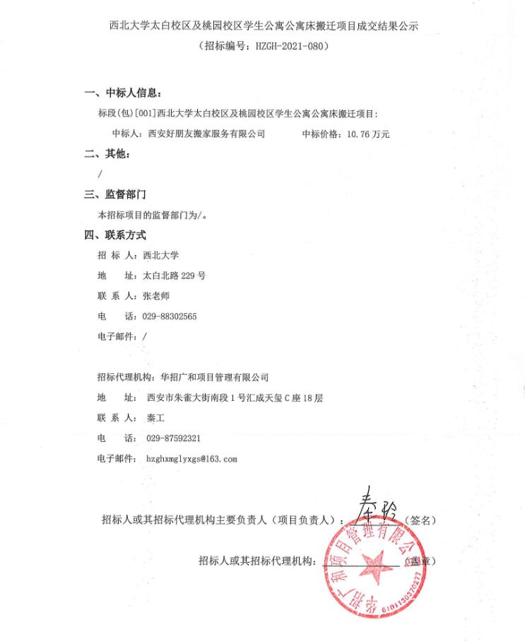 关于伟德国际1949始于英国太白校区及桃园校区学生公寓公寓床搬迁项目成交结果公示